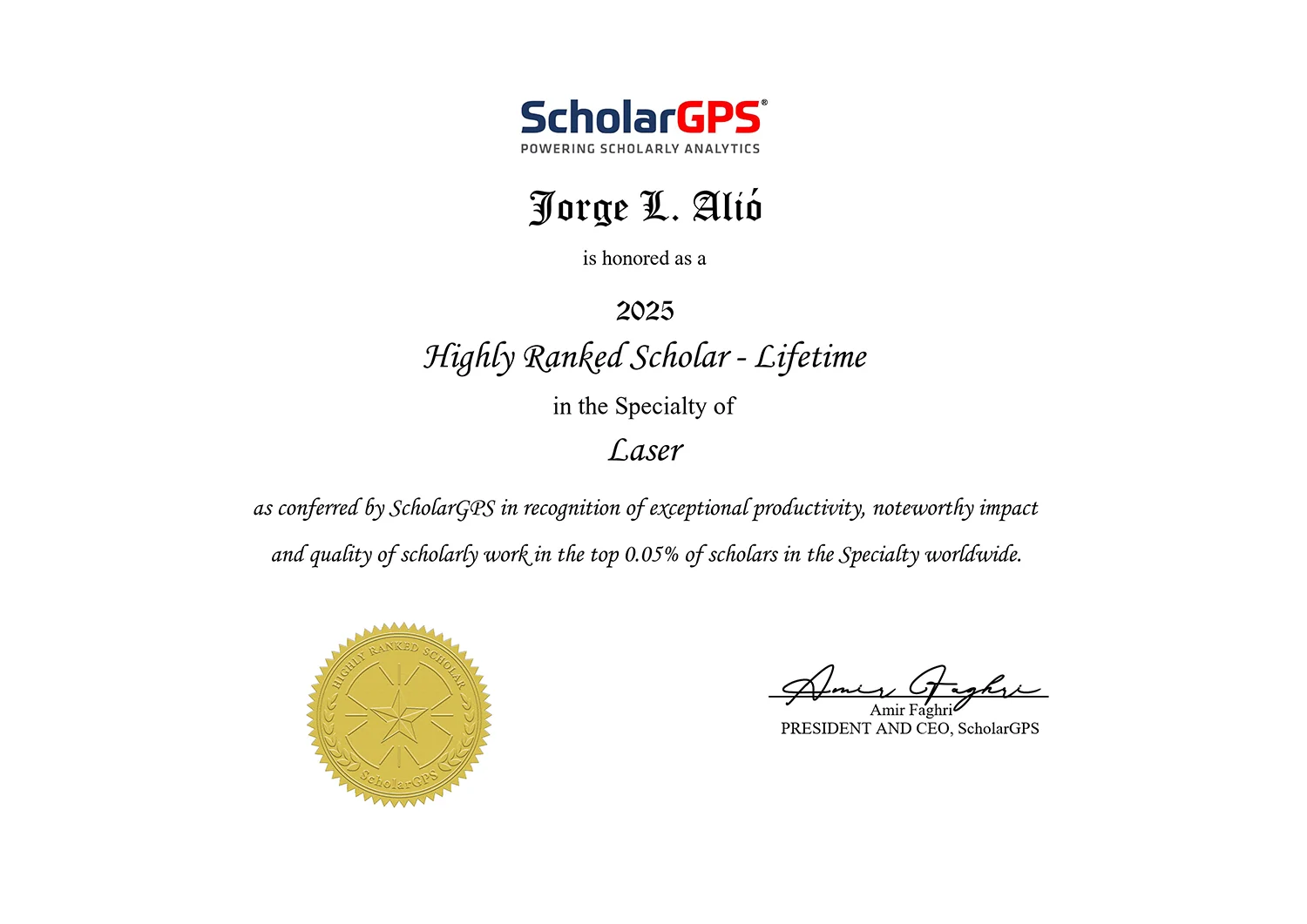 Enhorabuena Doctor Alió, aun recuerdo cuando puse en sus manos a mi hija con tan solo nueve añitos en la clínica San Carlos, fue un éxito la operación, cuanto ha llovido desde entonces, mi admiración por usted..saludos.