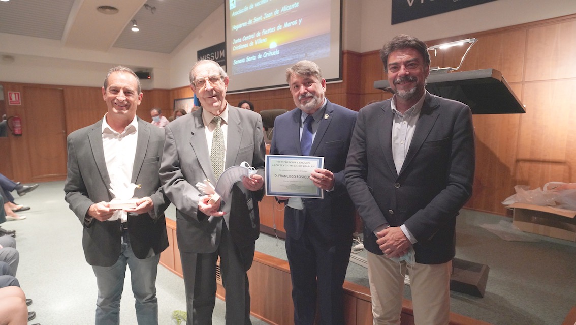 The role of the local festivities was also enhanced during this ‘Act of Peace 2021‘, for their capacity of economic and touristic mobilization at the local and national level. The mayor of Agost – Juanjo Castelló, collected the award intended as tribute to the local population, and the promotion of pottery as one of the oldest and most extended local occupations. The same recognition is presented for the Alicante Bonfires – from the Central Board of Fiestas of Moors and Christians of Villena, represented by its president Francisco Rosique; and for the Association of Neighbors of Rabal de Villena, represented by its president José Cabanes, for the generation of employment in the field of crafts and services. The mayor of Orihuela Emilio Bascuñana also attended the ceremony to collect the award for the Holy Week of Orihuela.